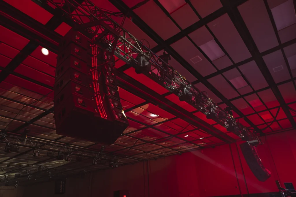 Déploiement d’un système D&B incluant des enceintes J8, J12 ainsi que des J-Sub, avec une gestion de délais optimisée pour assurer une couverture sonore uniforme, peu importe l’endroit dans la salle. Cette configuration a permis d’offrir une puissance impressionnante tout en conservant une excellente clarté sonore, même dans les zones les plus éloignées.
