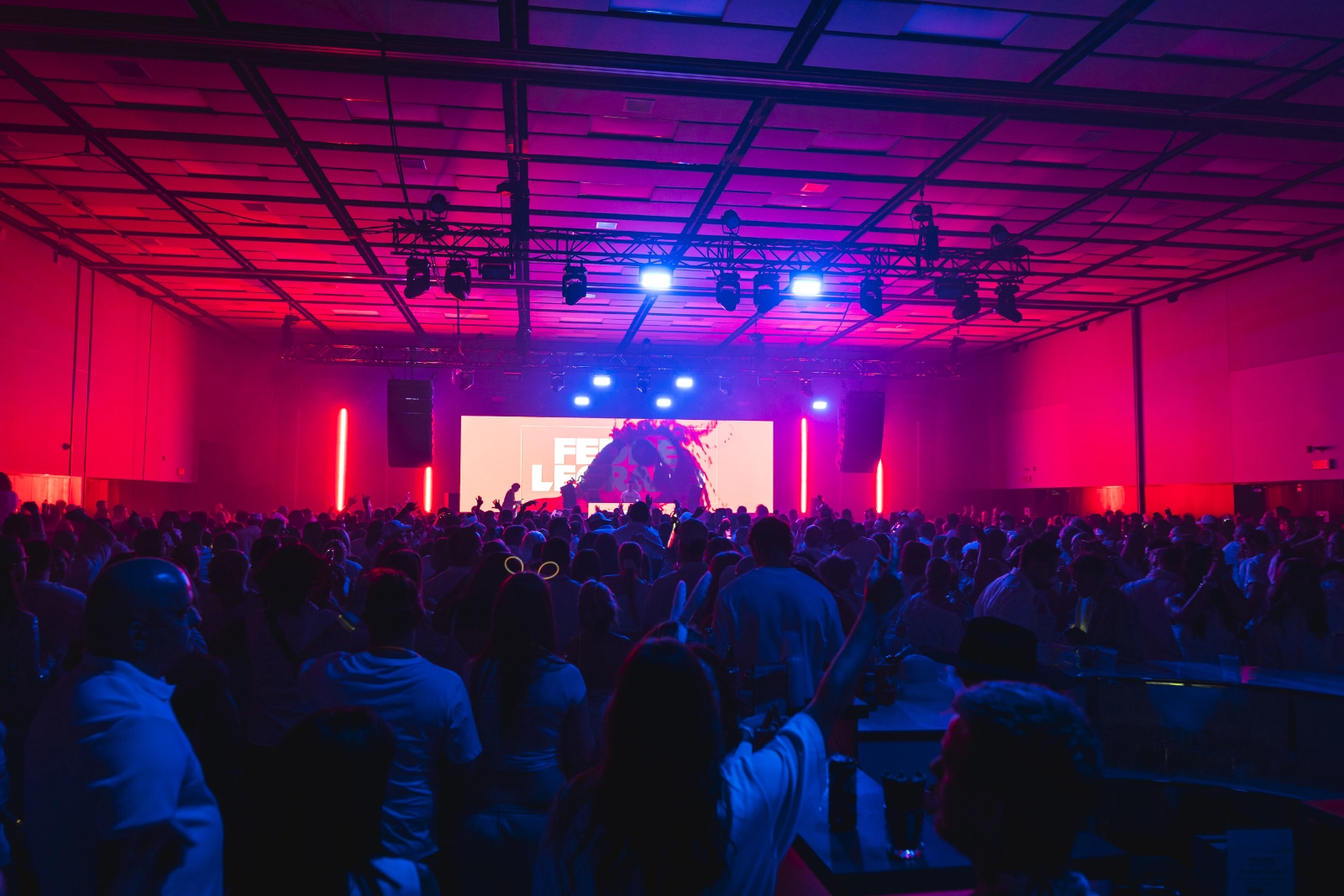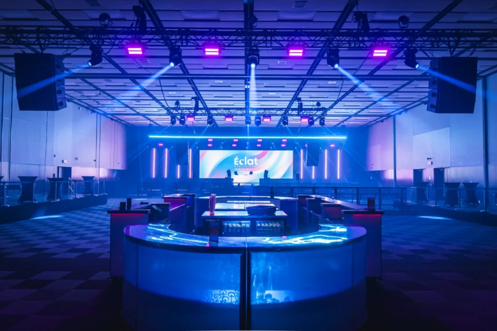 L’éclairage a également été entièrement repensé avec une présence étendue à l’ensemble de la salle plutôt que limitée à la scène. L’augmentation importante du nombre de fixtures, jumelée à l’ajout de black lights, a contribué à créer une ambiance distinctive. Le résultat se traduit par une immersion complète, autant sur la piste de danse qu’à travers toute la salle.